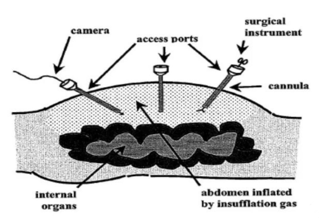 套管针通常包括套管、密封结构和填塞装置。套管针的填塞装置和密封结构通常通过连接部分(例如螺纹结构或扣紧结构)彼此连接。套管针还允许外科手术医生对病人的腹腔充气,以便为医生的操作提供空间。在外科手术期间,当外科器械通过套管针进出腹腔时,套管针的密封结构还可以保持腹腔内的气压,保证了手术的成功进行。如下图所示,图中显示了手术器械通过套管针插入腹腔的示意图。