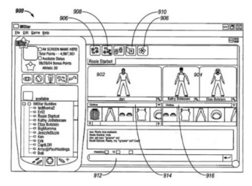 该专利中,游戏中的玩家可以使用虚拟资源来定制他们的虚拟人物,并通过添加“表情、身体动作、头像执行的动画、服装或配饰”来改变虚拟人物的外观。